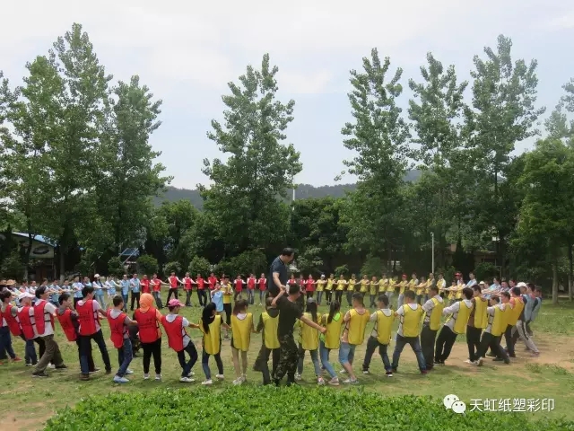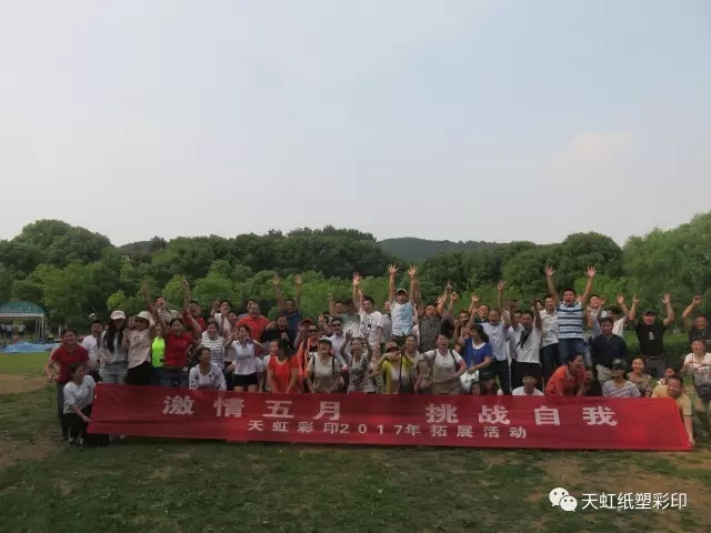 激情五月,挑戰(zhàn)自我,5月14日,天虹彩印公司組織員工進(jìn)行了團(tuán)建拓展活動(dòng)。活動(dòng)在風(fēng)景秀麗的九真山風(fēng)景區(qū)拉開(kāi)序幕,在教練的帶領(lǐng)下,所有團(tuán)隊(duì)成員開(kāi)展了破冰分組、動(dòng)感擊球、團(tuán)隊(duì)圣塔、動(dòng)力圈繩四個(gè)拓展項(xiàng)目。